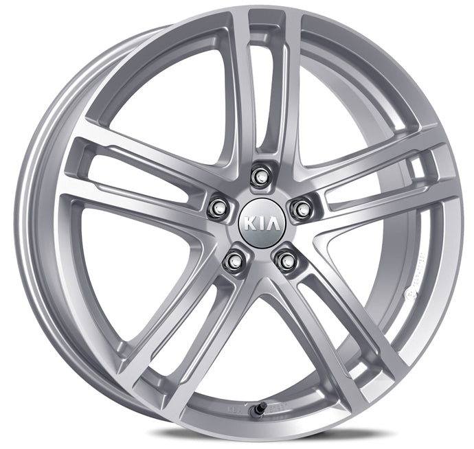17" five-double-spoke silver alloy wheel, 7.0Jx17, suitable for 215/55 R17 tyres. Cap included, nuts not included.